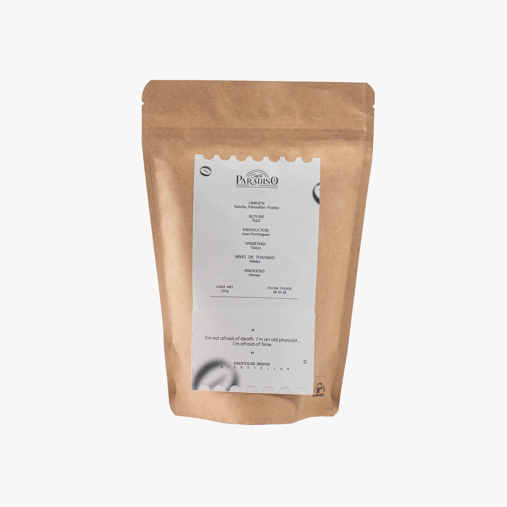 Cultivado a 1420 msnm en Pahuatlán, Puebla, este café de variedad Típica se procesa bajo el método honey, que conserva parte del dulzor natural del fruto. El resultado es una taza de cuerpo medio, aroma a caramelo y chocolate, y un equilibrio entre notas dulces y frutales. Un café versátil que ofrece complejidad sin perder suavidad, ideal para quienes buscan un perfil aromático pero con carácter.